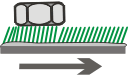 The material to be conveyed is in resting position on the bristle Now if the conveyer system moves forward, the bristles bend themselves against their original inclination to the rear, whereby the part, conditionally by the remainder inclination, remains lying on the same bristles. The slipping back of parts is prevented During the forward movement the part, like with uncoated plants, is raised by those inclined/slanted spring rods and transported forward with a diagonal throw a small piece. The tendency of the bristles, the starting position of approx.. 70` again to assume, strengthens the forward movement During the "throw" the conveyer system withdraws itself again and the part hits the bristles in the meantime in resting position. Here the edition appropriate bristles are depressed and the impact energy of the part by the bristles is caught.